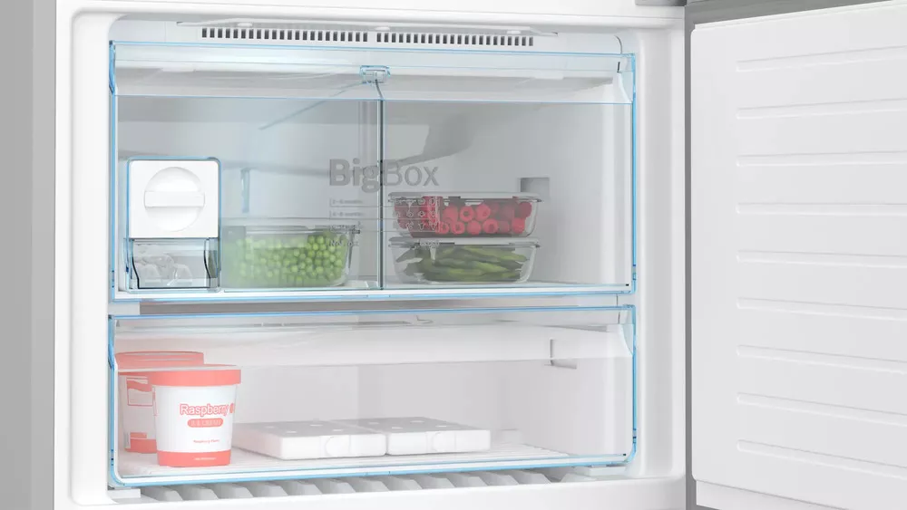 Морозильное отделение оснащено системой NoFrost, поддерживает высокую скорость замораживания и автономно сохраняет холод при отключении питания. При уровне шума всего 40 дБ холодильник Bosch KGN86AI32U остается почти незаметным в повседневной жизни. Предусмотрены защита от детей и сигнализация при открытой двери или ошибке, а перенавешиваемые двери упрощают установку в нужной нише.