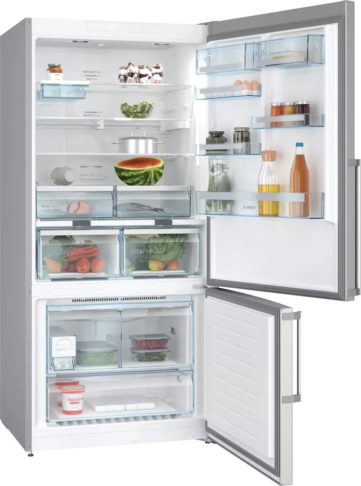 Двухкамерный холодильник Bosch KGN86AI32U — это сочетание функциональности, эффективности и стильного дизайна. Изготовленный в Турции, этот отдельностоящий холодильник с морозильником внизу предлагает общий полезный объем 619 л, что обеспечивает достаточно места для хранения продуктов питания. Серия Serie | 6 от Bosch известна своим качеством и надежностью, а также привлекательным внешним видом в оттенке нержавеющей стали, который органично впишется в современную кухню.