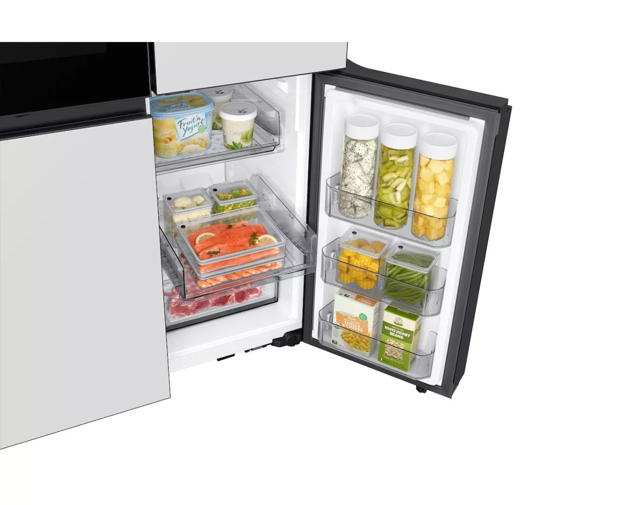 Холодильник Samsung RF9000DC — это вместительное и технологичное решение для большой семьи, выполненное в формате French Door (четыре двери). Общий объем 676 литров, разделенный на три независимые камеры, позволяет организовать хранение продуктов с максимальным комфортом. Модель оснащена инверторным компрессором, полной системой No Frost в обеих камерах, встроенным ледогенератором и интеллектуальным управлением через Wi-Fi. Стильный белый корпус со стеклянными дверями и внутренними ручками гармонично впишется в современный интерьер просторной кухни.