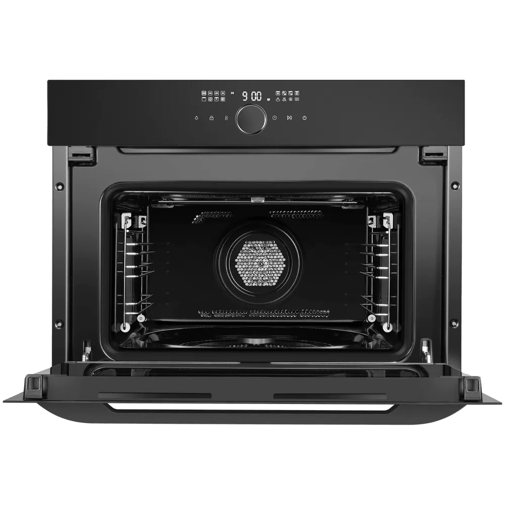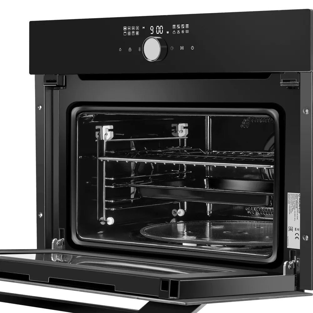 Модель поддерживает расширенный набор функций: 15 режимов работы включают гриль, комби-режимы с микроволнами, конвекцию и «Воздушную сушку» для бережного обезвоживания фруктов, овощей и трав при 60–100 °C. Уход упрощает гидролизная очистка и эмаль легкой очистки, отталкивающая жир и влагу.