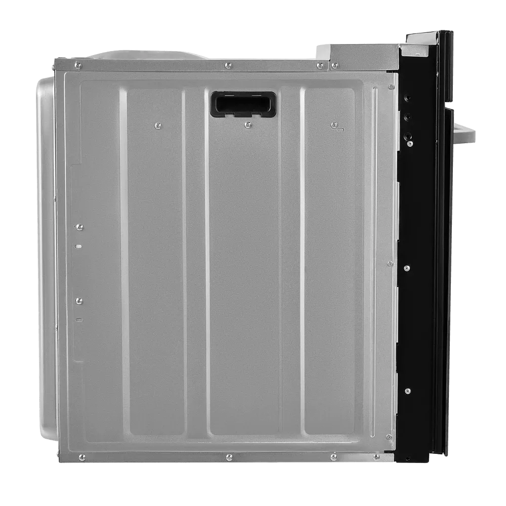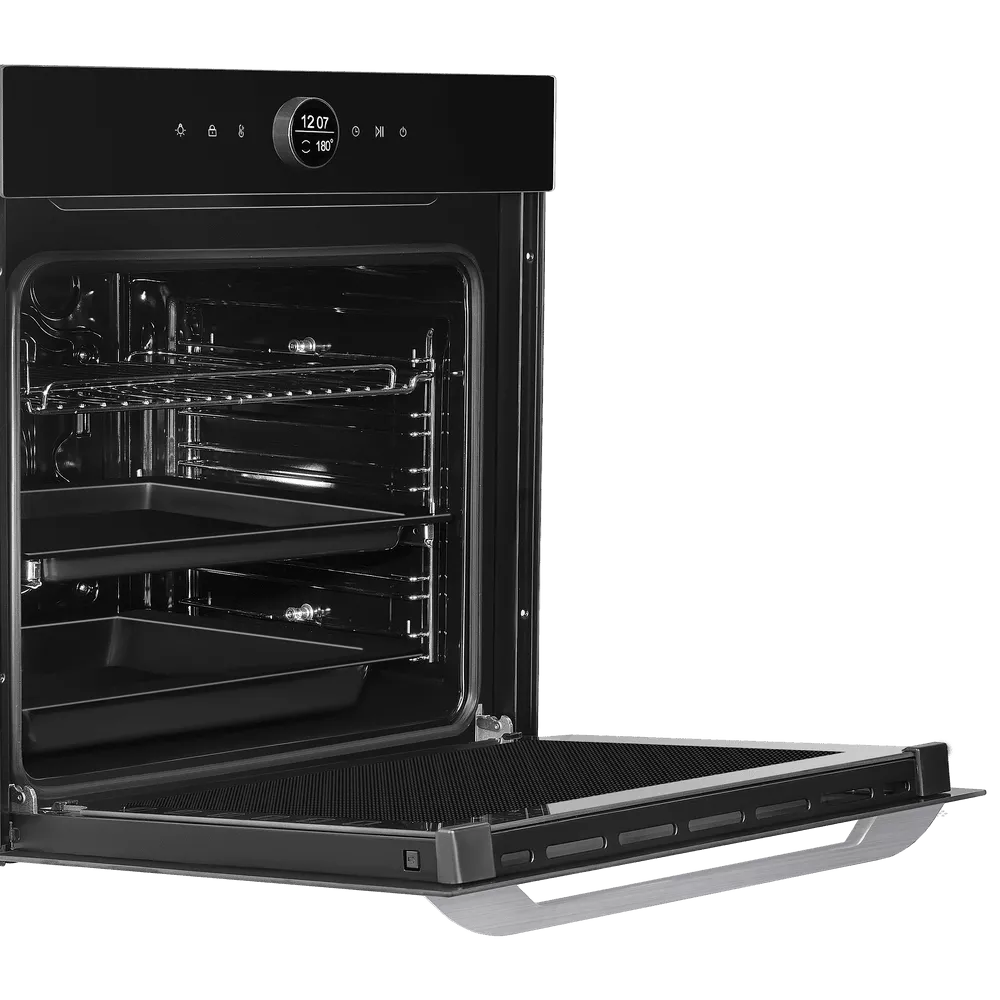 Двухуровневые телескопические направляющие делают извлечение противней безопасным и удобным: выдвигайте горячий противень, проверяйте степень готовности и добавляйте соусы без риска обжечься. Технология «Холодный фронт» бережёт ваши руки и кухонную мебель, сводя нагрев внешнего стекла к минимуму.