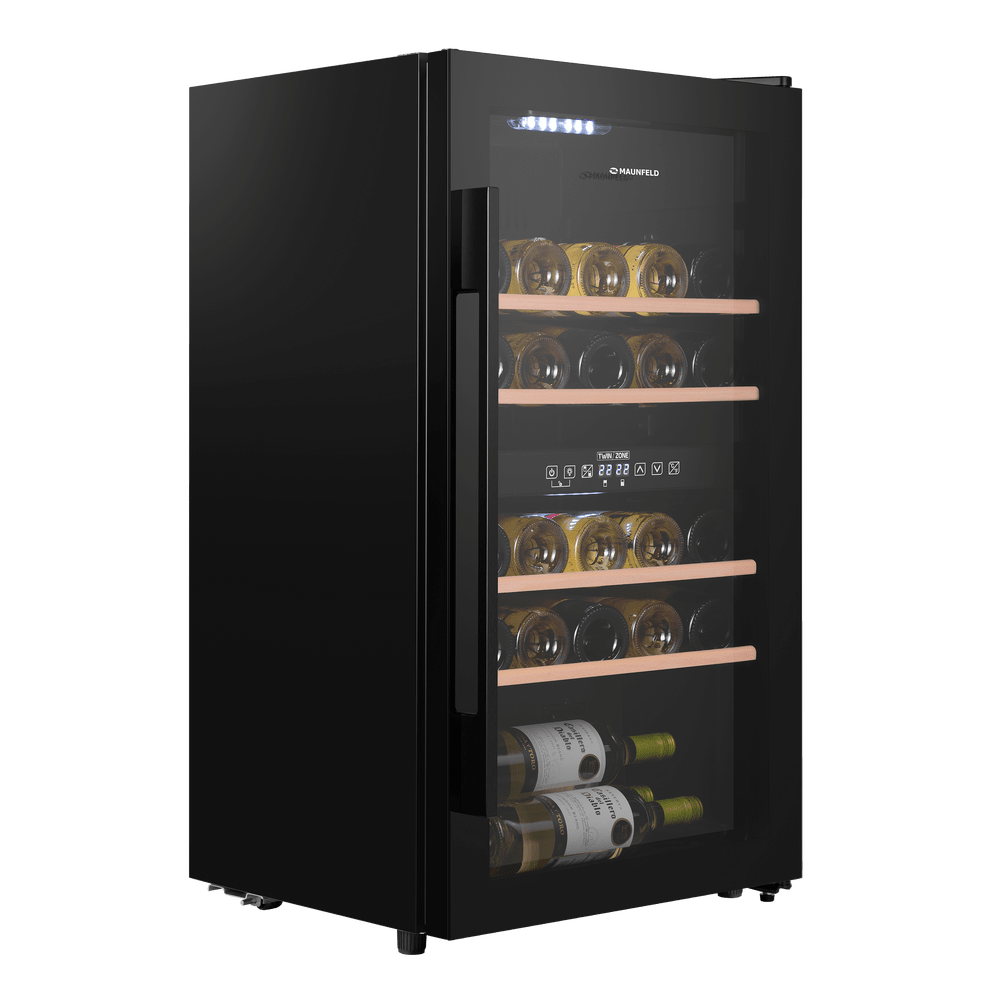 Современный винный шкаф MAUNFELD MFWC-85D28 создаёт идеальные условия для домашнего хранения коллекции. Две независимые температурные зоны позволяют одновременно выдерживать красные, белые и игристые вина, точно подстраивая режим под каждый тип напитка.